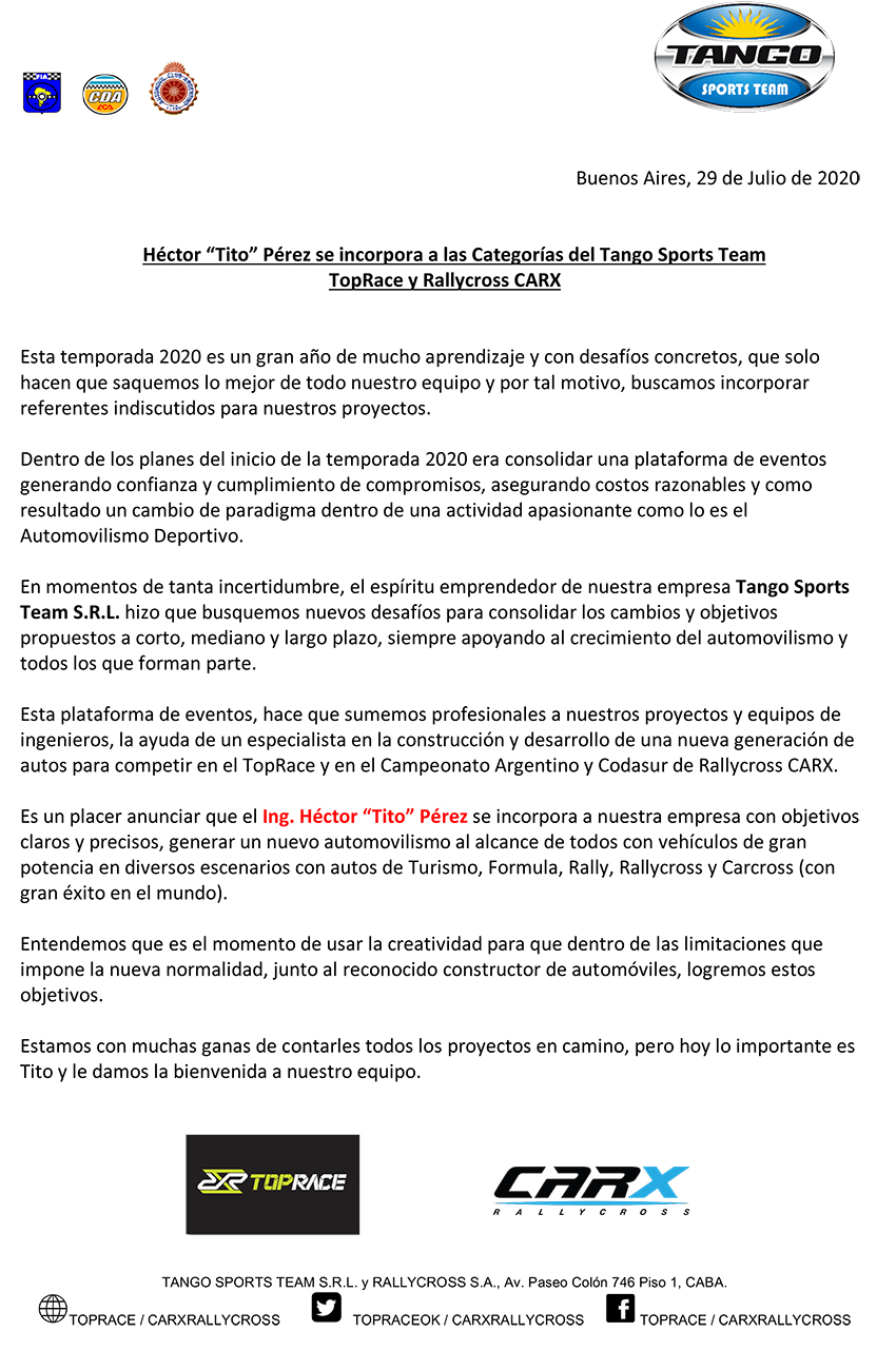 Héctor “Tito” Pérez se suma al RallyCross CarX