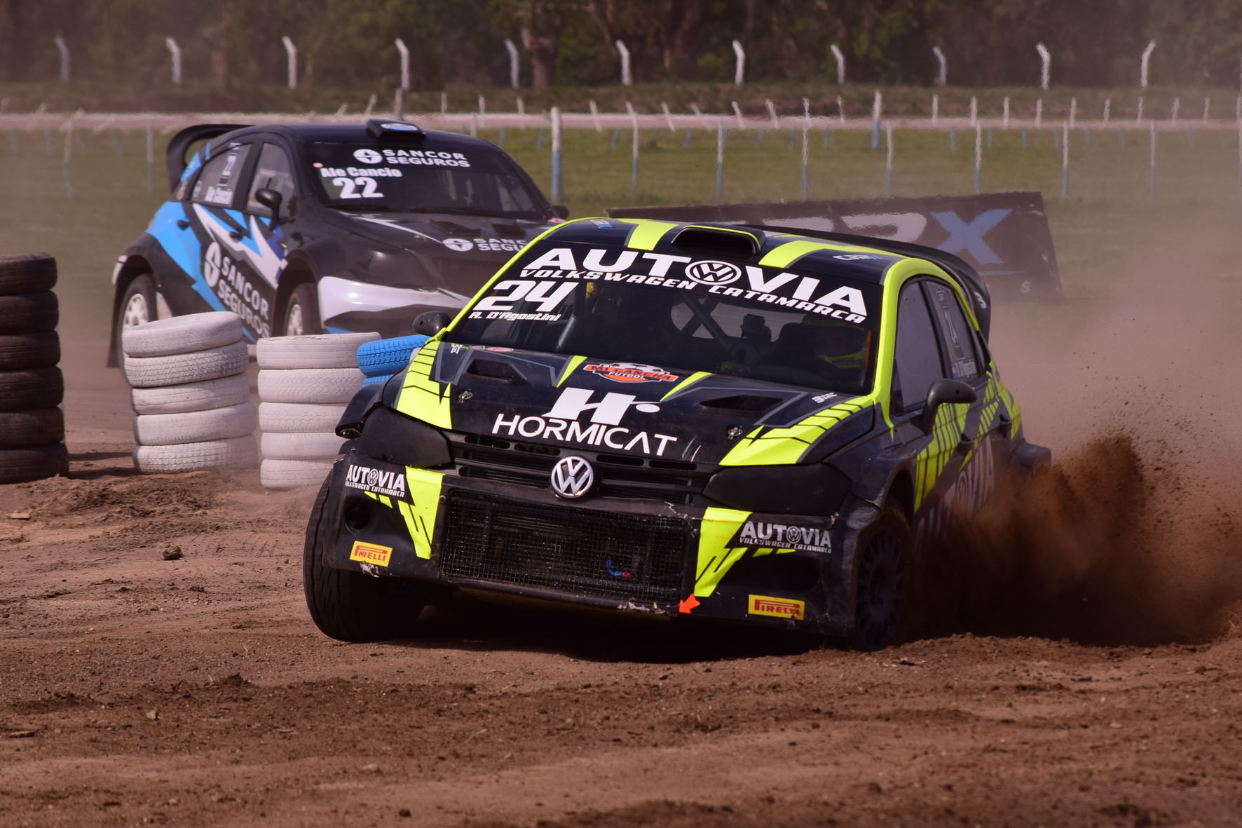La poco visibilidad por el barro que se acumuló en el parabrisas del VW Polo hizo que Augusto D´agostini se despistará en los primeros metros de la final de la RC2 en el Autódromo de Río Cuarto, Córdoba. A partir de ahí el piloto de Catamarca se dedicó a recuperar terreno perdido en una pista complicada por la lluvia que cayó durante toda la jornada del sábado.